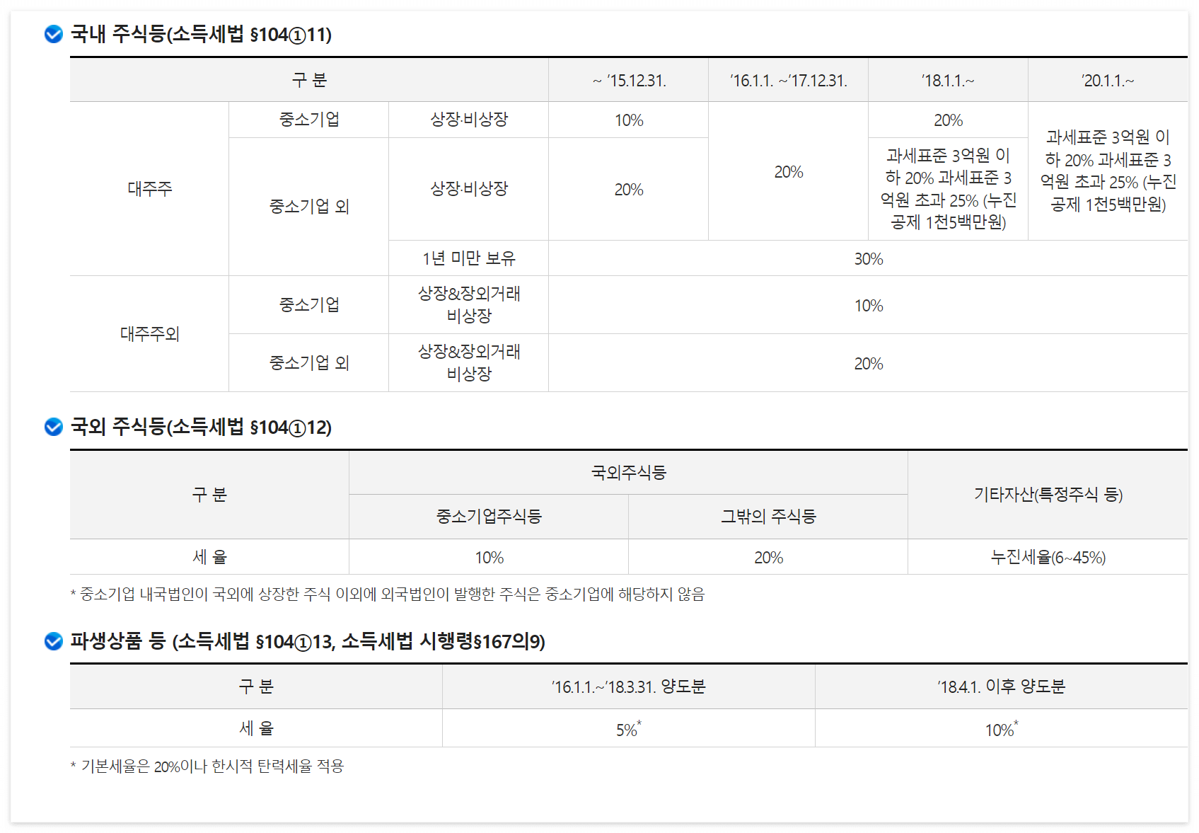 오늘은 저번 첫번째 부동안 양도소득세에 이어서 주식에 대한 양도소득세 기준을 알아보도록 하겠습니다:)