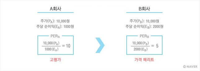PER 이 높다는 것은 그 회사의 순이익에 비해서 주가가 높다는 것을 의미하고, PER 이 낮다는 것은 순이익에 비해 주가가 낮다는 것을 의미합니다.