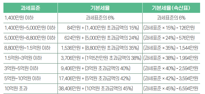 아래 과세표준에 따른 세율 계산 표를 보시면 과세표준의 금액이 높을 수록 세율이 증가한다는 것을 알 수 있습니다.