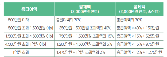 세금을 내야하는 소득 중에서 일부금액을 빼주는 것을 의미합니다. 이는 과세표준을 계산하기 위함인데요, 여기서 말하는 과세표준은 세금을 부과하는 기준이 되는 금액입니다.