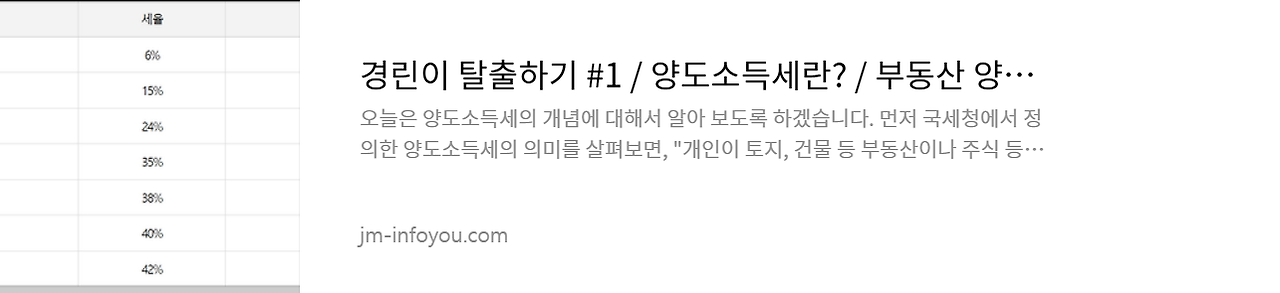 과세표준에 따라 세율을 적용해 둘을 곱해주면 최종적으로 내야 할  양도소득세가 계산됩니다.