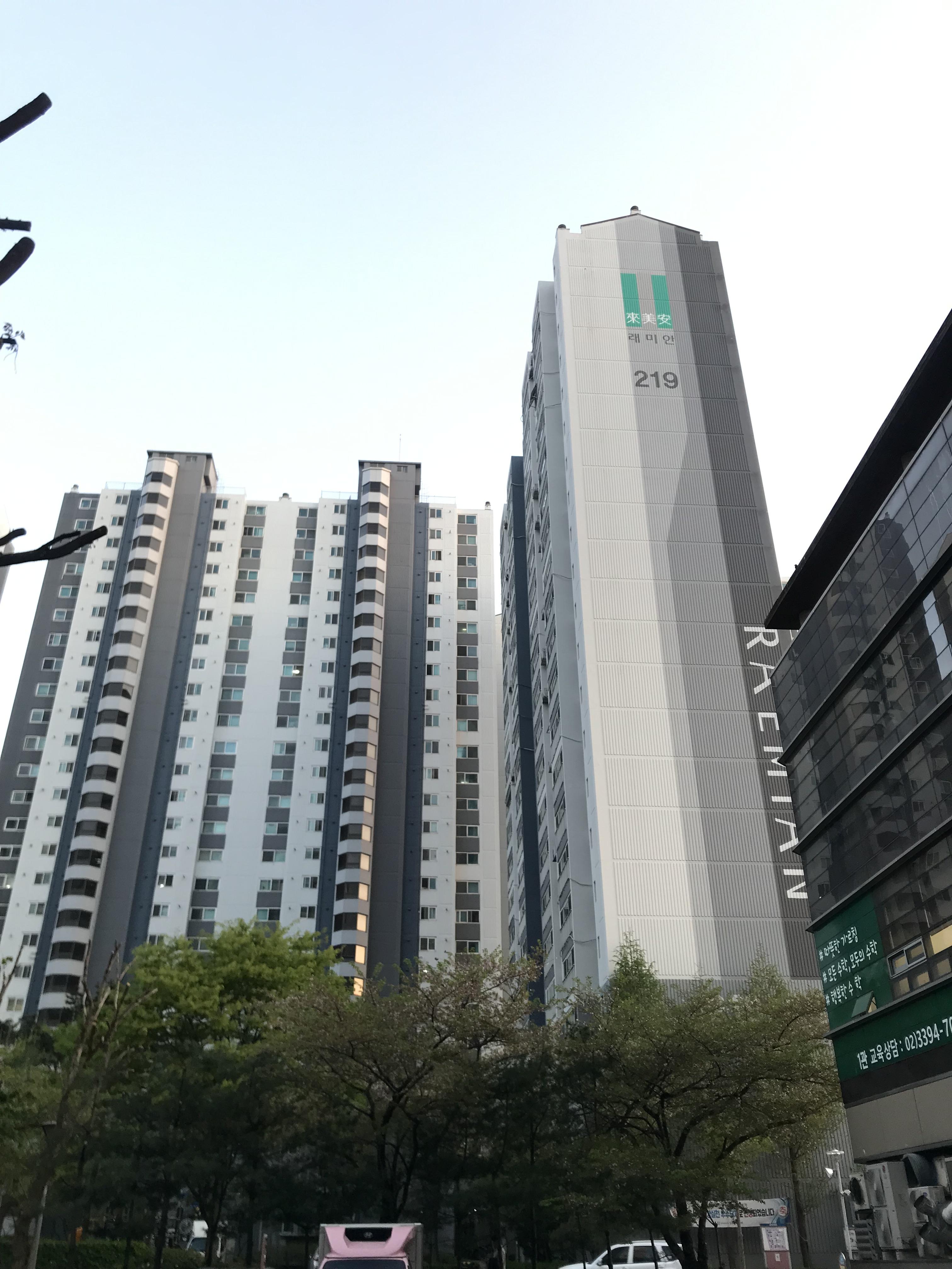 -페인트칠해서 외관은 깔끔한 편으로 보여지며, 금요일 오후 기준 아파트 알뜰장이 열렸다.