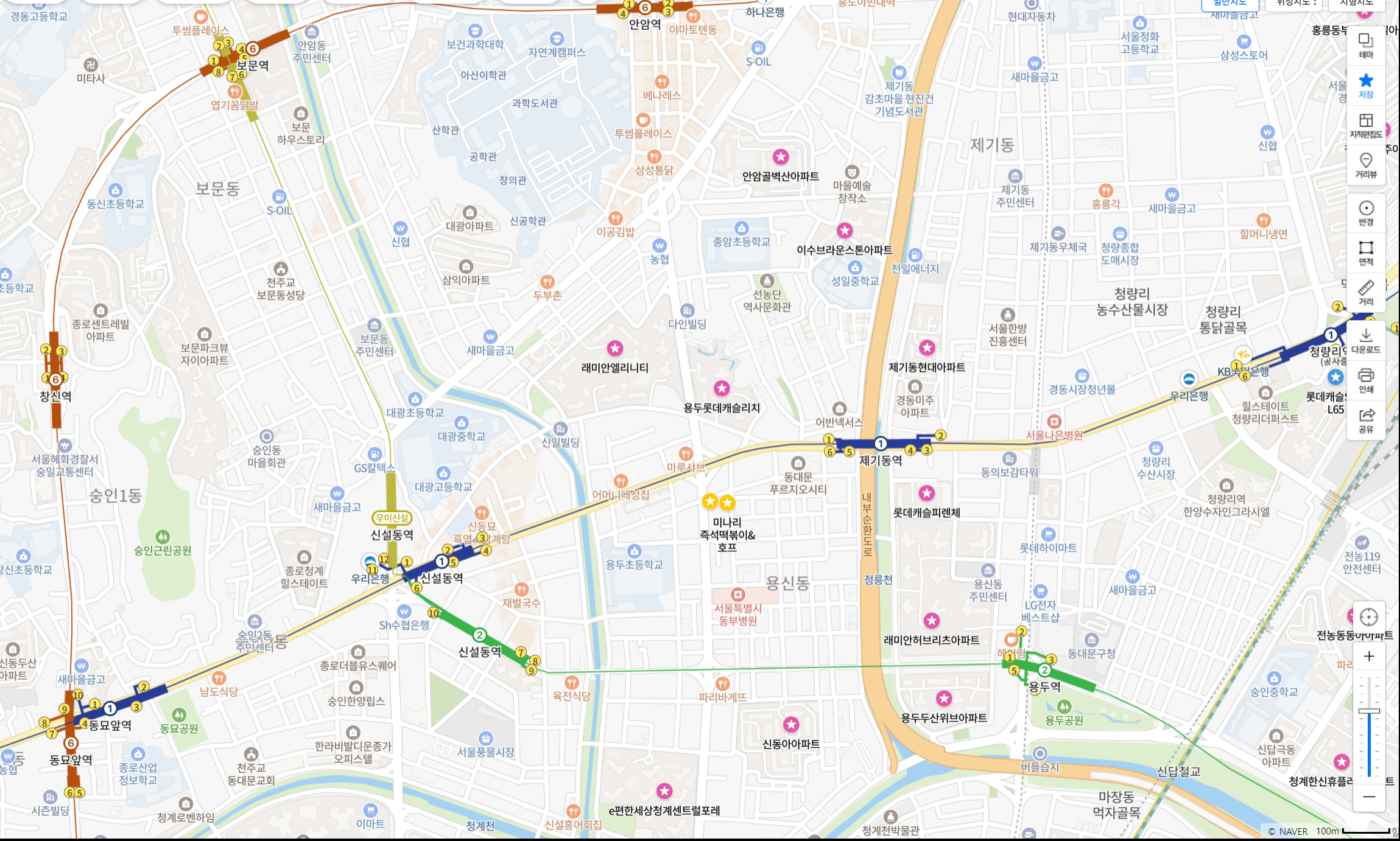 -위의 지도상으로는 잘렸는데, 고려대역과 인접해있음 (6호선) / 정릉천 이용가