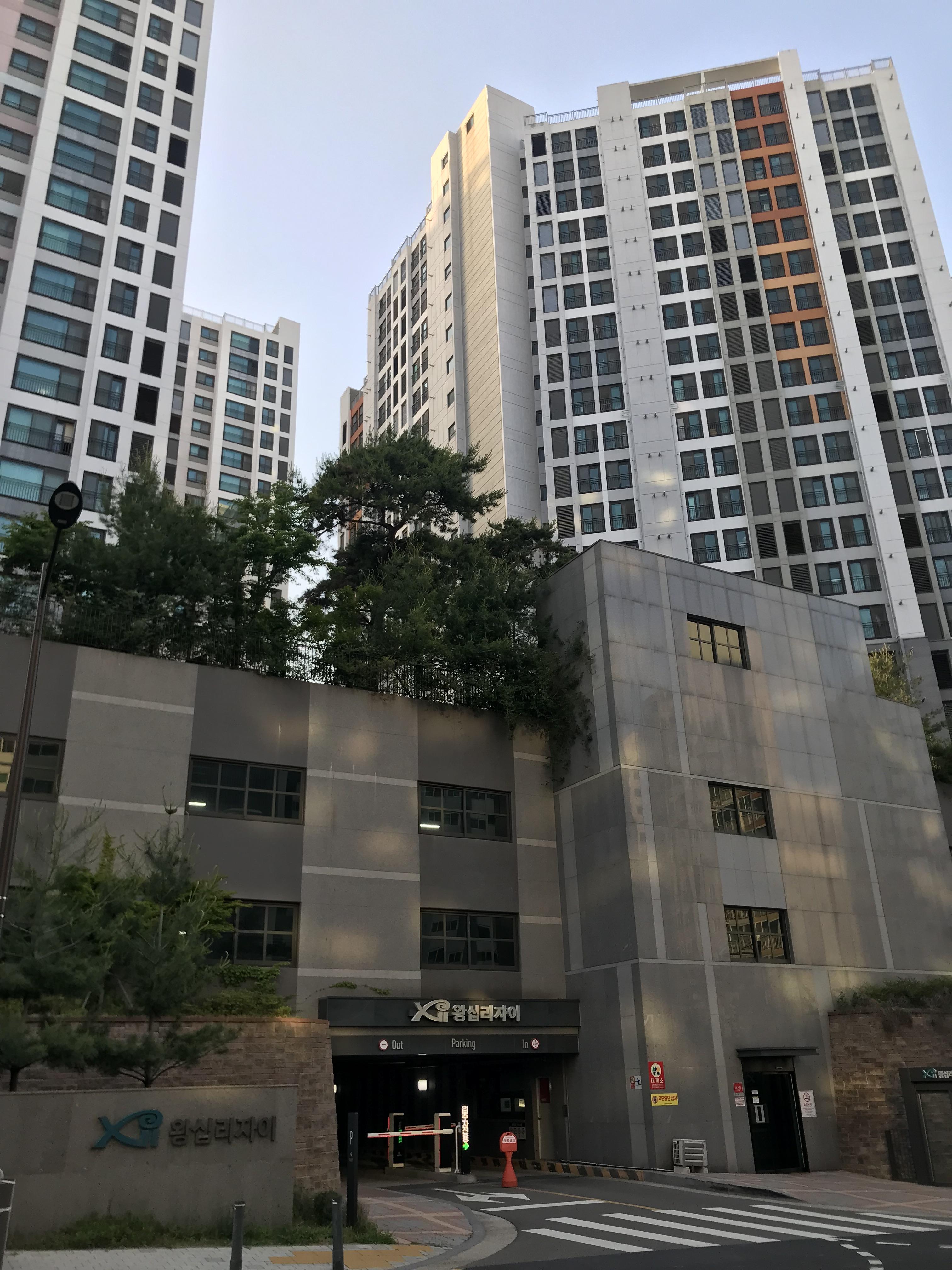 -해모로 아파트는 언덕 중턱에 위치함 / 아파트 위쪽으로 공원이 있음 / 상왕십리역 도보 5-10분