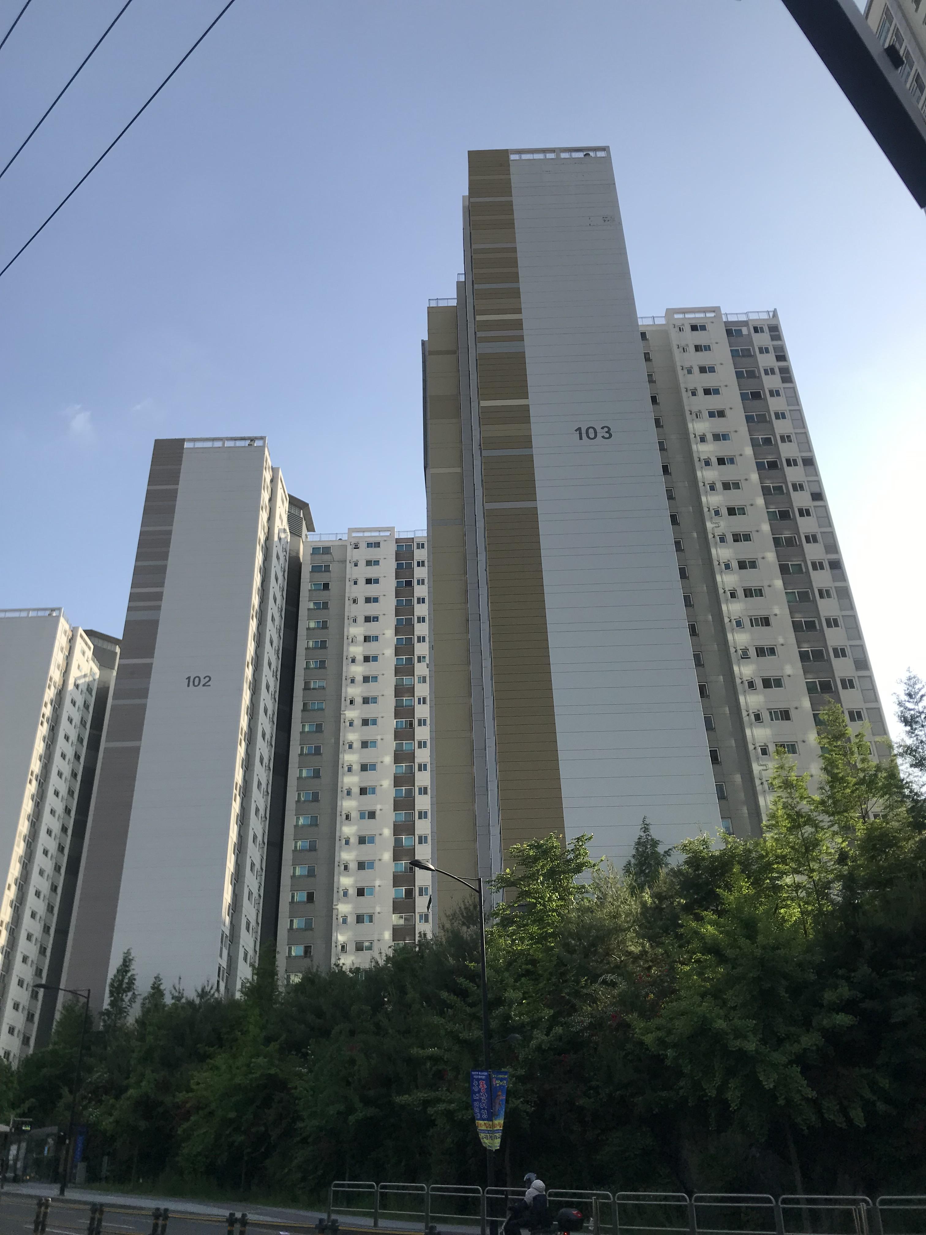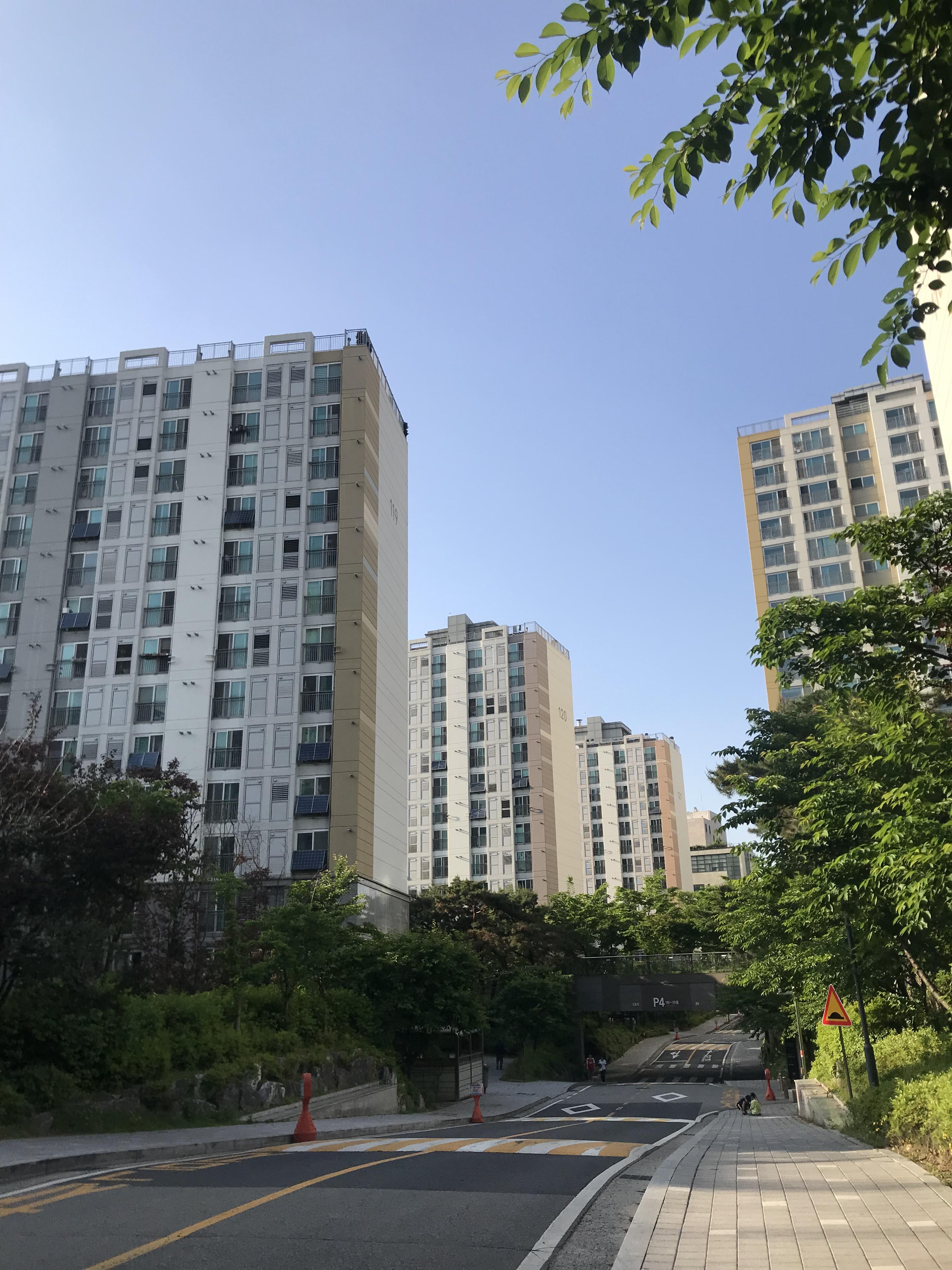 -단지 내 경사가 매우 높음 - 정문이 지대가 가장 낮고 정문에서 단지 엘베로 올라가는 구조