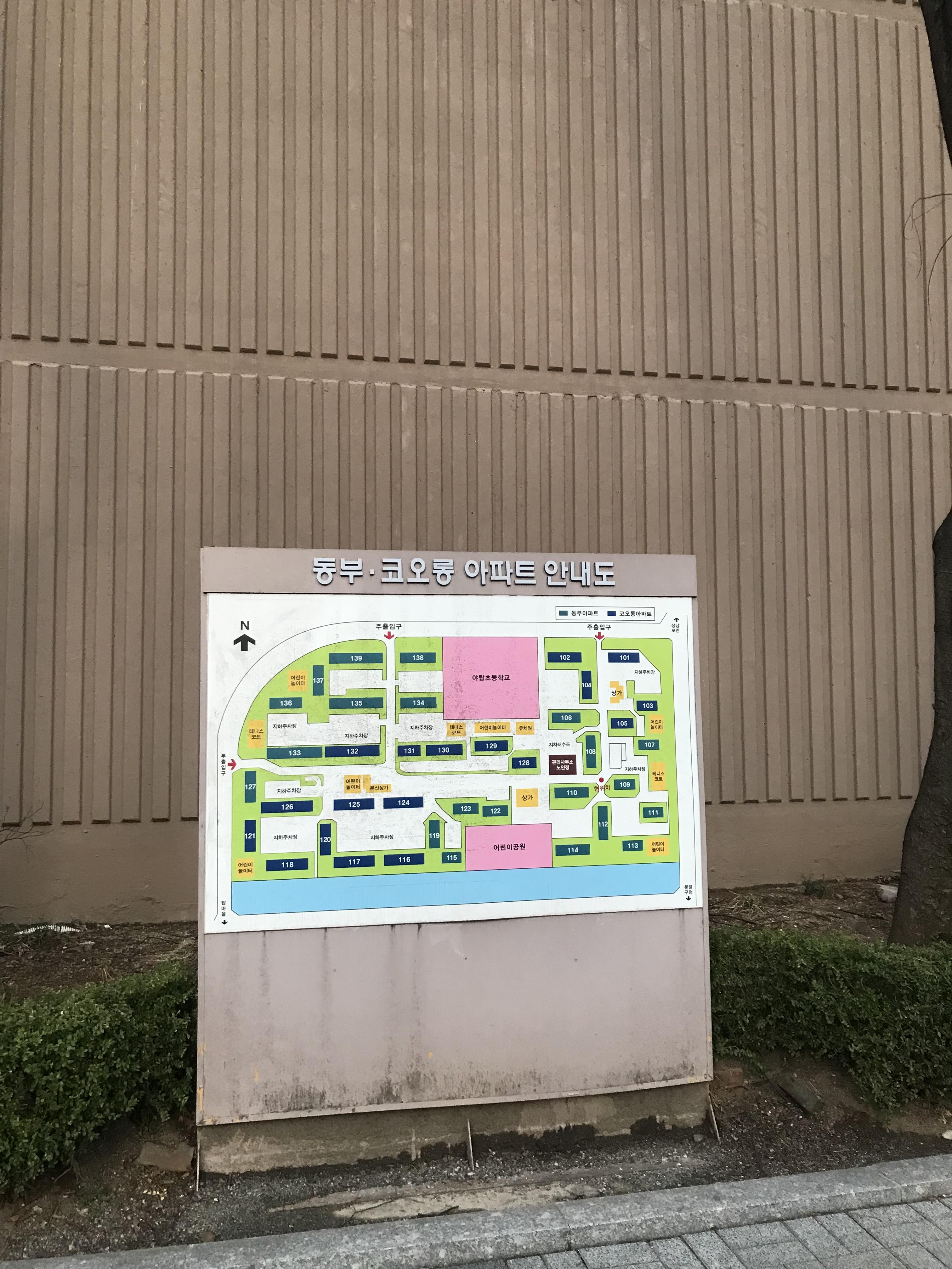 -실제 가보았을 때는 코오롱 아파트와 동부아파트가 한개의 거대 단지를 이루고 있었고, 네이버 지도 상에서도 하나의 단지로 나오기는 한다. 단지가 커서 좋았지만 주차공간은 충분해 보이지 않아 아쉬웠다.