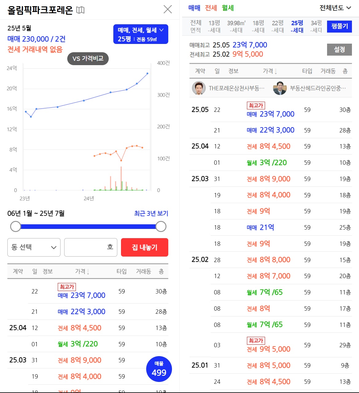 워낙 규모가 큰 단지이기 때문에 실거래가 정보가 아주 많습니다.