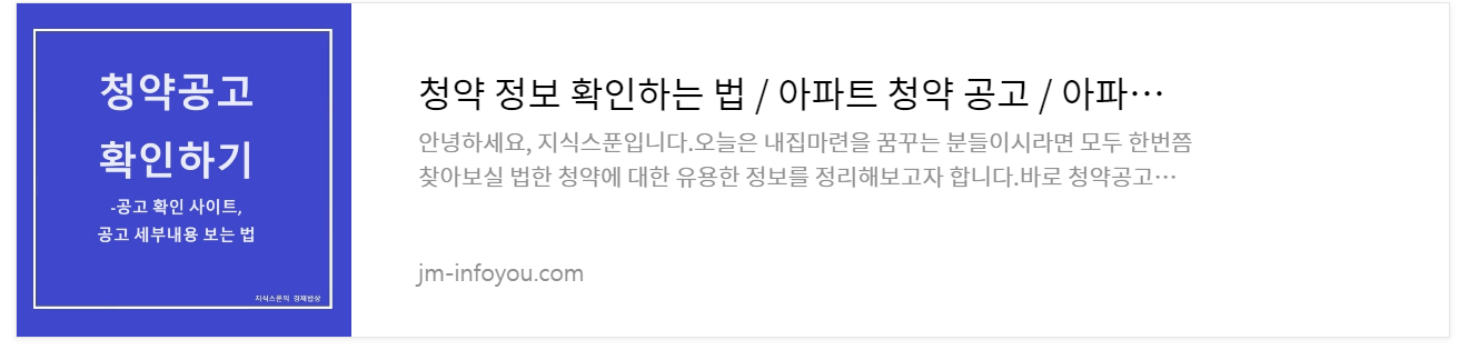 | 청약 정보 확인하는 법 / 아파트 청약 공고 / 아파트 분양 정보 확인 / 호갱노노 / 청약홈 / LH 청약 (0) | 2024.06.18 |