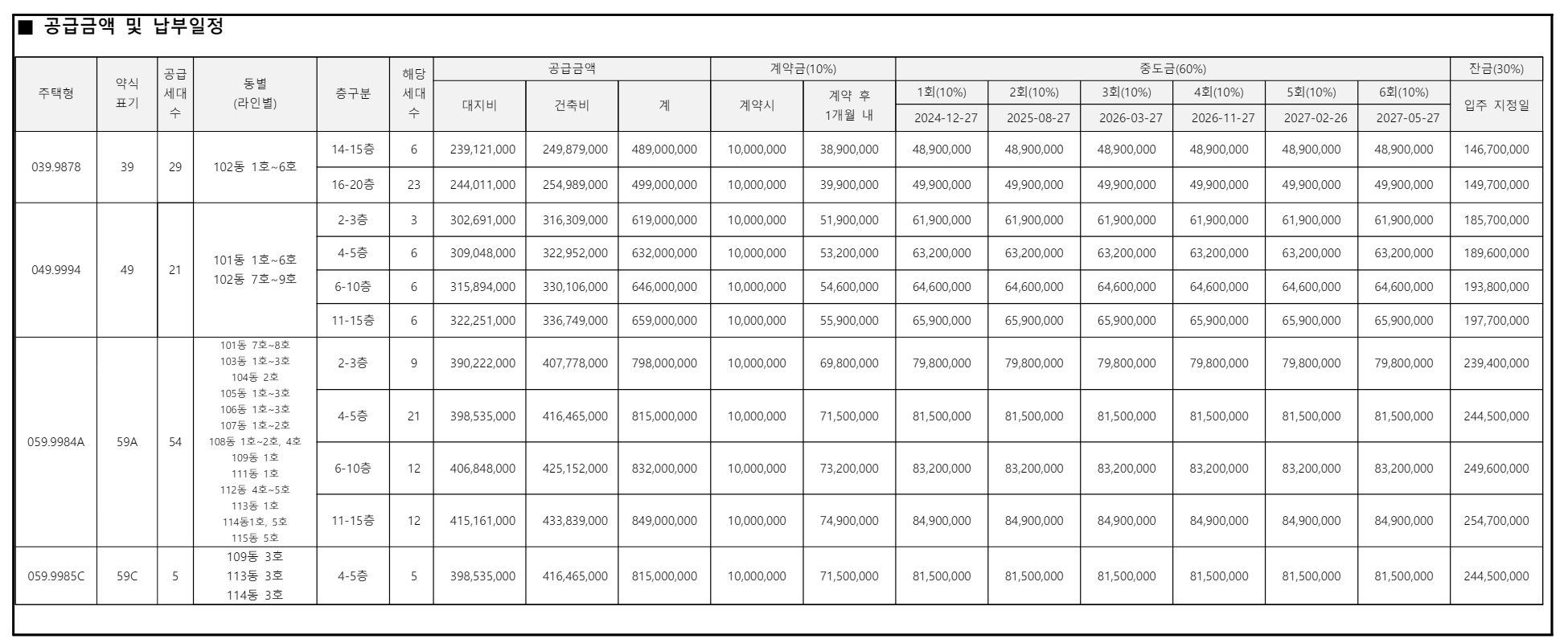 일정을 확인한 다음에는 공급될 매물의 평수 (평형) 및 금액을 확인해야 합니다.