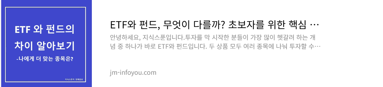 | ETF와 펀드, 무엇이 다를까? 초보자를 위한 핵심 비교 가이드 (0) | 2025.08.24 |