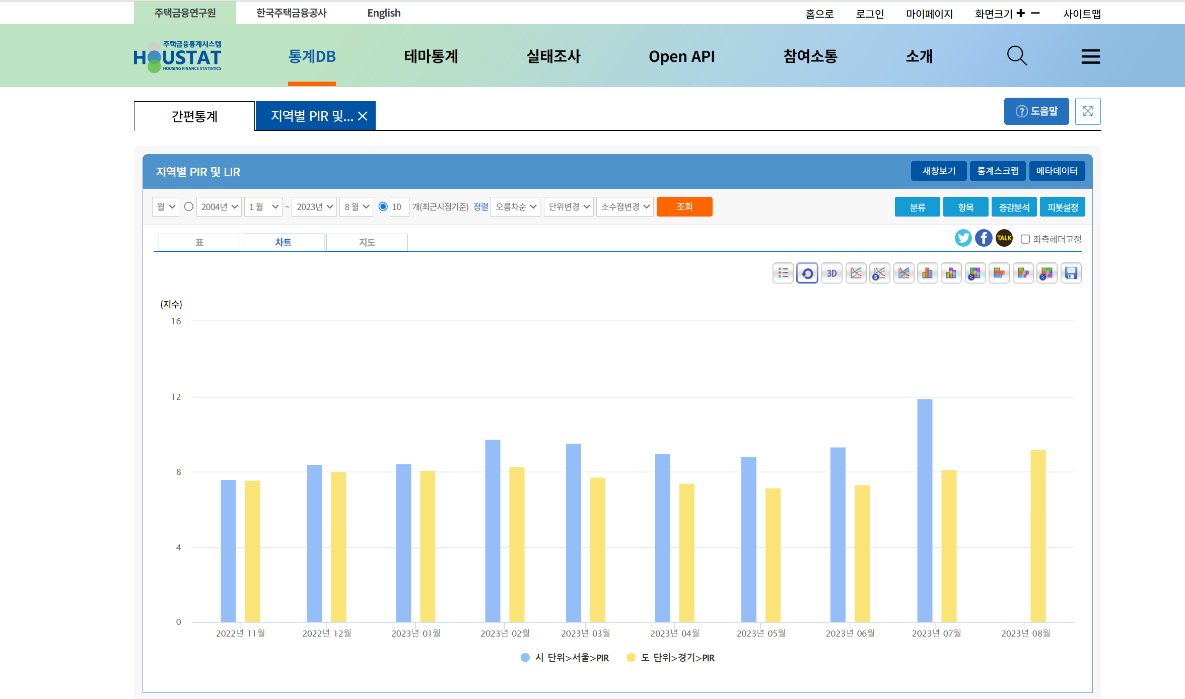 홈페이지 내 통계 DB=> 간편통계 => 지역별 PIR 및 LIR 에서 매월 업데이트 되는 지역별 지수현황을 확인하실 수 있습니다.